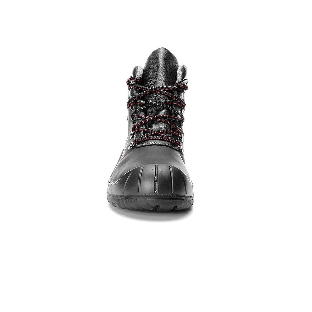 Veiligheidsschoen GORE-TEX® half hoog van rundleder met stalen neus en tussenzool, antistatische softvlies binnenzool, grof geprofileerde PU/PU zool safety-grip, gepolsterde watertong en aangespoten kruipneus.