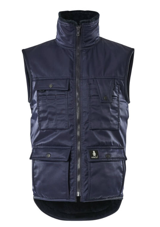 Waterafstotend. Bontvoering. Deelbare rits. Borstzak met klep. Telefoonborstzak met verstelbare klep. Pennenzakjes. Borstzakken - twee open en twee met klep en drukknoop. Binnenzakken - één met ritssluiting en één met klittenbandsluiting.