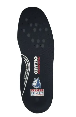 De Steel Blue Ortho Rebound® Inlegzool is speciaal ontworpen om de hele voet te omvatten, te ondersteunen en te beschermen, van hiel tot teen. De inlegzolen zijn vervaardigd van hoogwaardig polyurethaan en behouden hun pasvorm, ook na langdurig dragen.