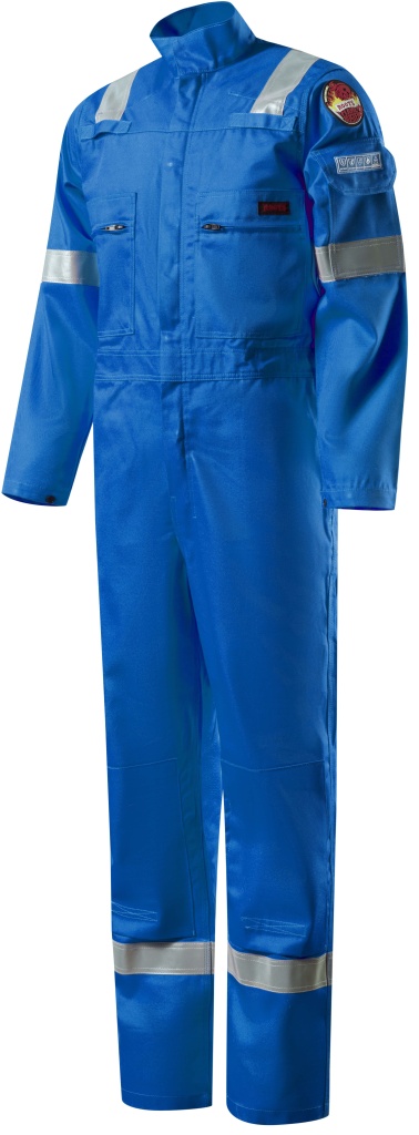 Vlamvertragende reflectie, non-metallic, centrale rits, kniezakken, twee radio lussen, twee zijzakken, doortast, borstzakken, kontzakken, pennenzak, duimstokzak, schouder pads.