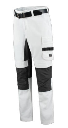 Deze hoogwaardige schildersboek heeft een aansluitende pasvorm. Met soepel mechanische stretch delen bij de kuiten en in het kruis is de bewegingsvrijheid in deze broek optimaal. De broek is in de taille verstelbaar middels een elastisch verstelbare tailleband. De Cordura kniestukken op de broek voor het plaatsen van kniekussens zijn donkergrijs geaccentueerd. De schildersbroek is uitgerust met met veel zakken om gereedschap en toebehoren zoals kwasten en steekmessen in te kunnen opbergen wanneer deze niet nodig zijn.